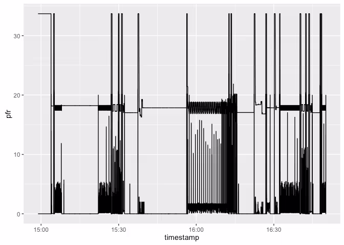 - Find out the times when the machine was not feeding (PFR~0) OR